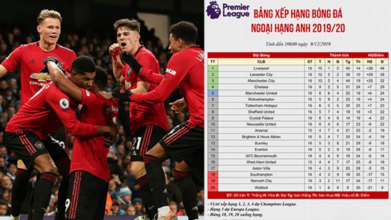 Bảng xếp hạng bóng đá Anh – Dữ liệu cho tín đồ thể thao vua