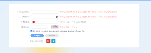 - Bước 3: Sau khi điền đầy đủ thông tin, anh em bấm vào nút xác nhận đã đủ độ tuổi quy định cũng như chấp nhận các quy định, điều kiện của hệ thống nhà cái GI8.